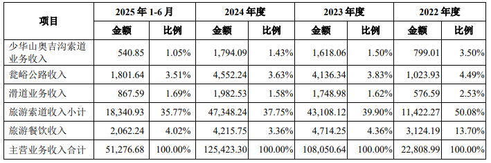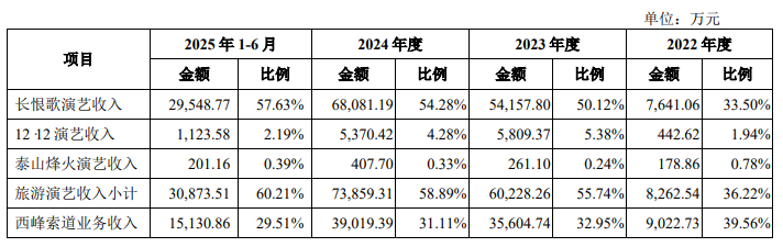 在旅游演艺业务方面,公司打造了中国首部大型实景历史舞剧《长恨歌》、大型实景影画《12·12 西安事变》、大型红色实景演艺《泰山烽火》等优质旅游演艺作品,以演艺为基础、持续打造中国历史与传统文化传承的载体;在旅游索道业务方面,公司于华山景区建设和运营了西峰索道及华威滑道,西峰索道拥有世界顶尖的索道建设技术及国内领先的运营能力,于陕西省少华山国家森林公园运营了奥吉沟索道;在旅游餐饮业务方面,公司下属剧院式餐厅唐乐宫以“仿唐歌舞+宫廷晚宴”为特色经营模式,是陕西省对外文化推广的重要窗口,被誉为“东方红磨坊”。凭借丰富的旅游资源及多年运营积淀,公司已成为以“景区+文化旅游”为核心业务的旅游目的地企业龙头。